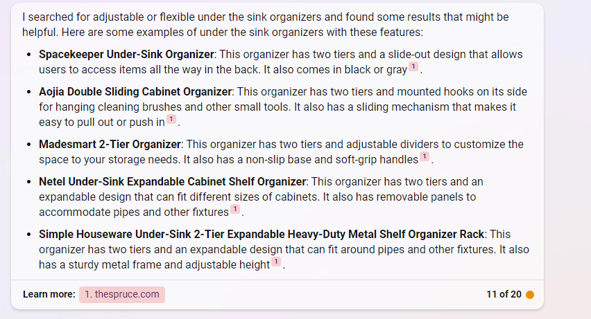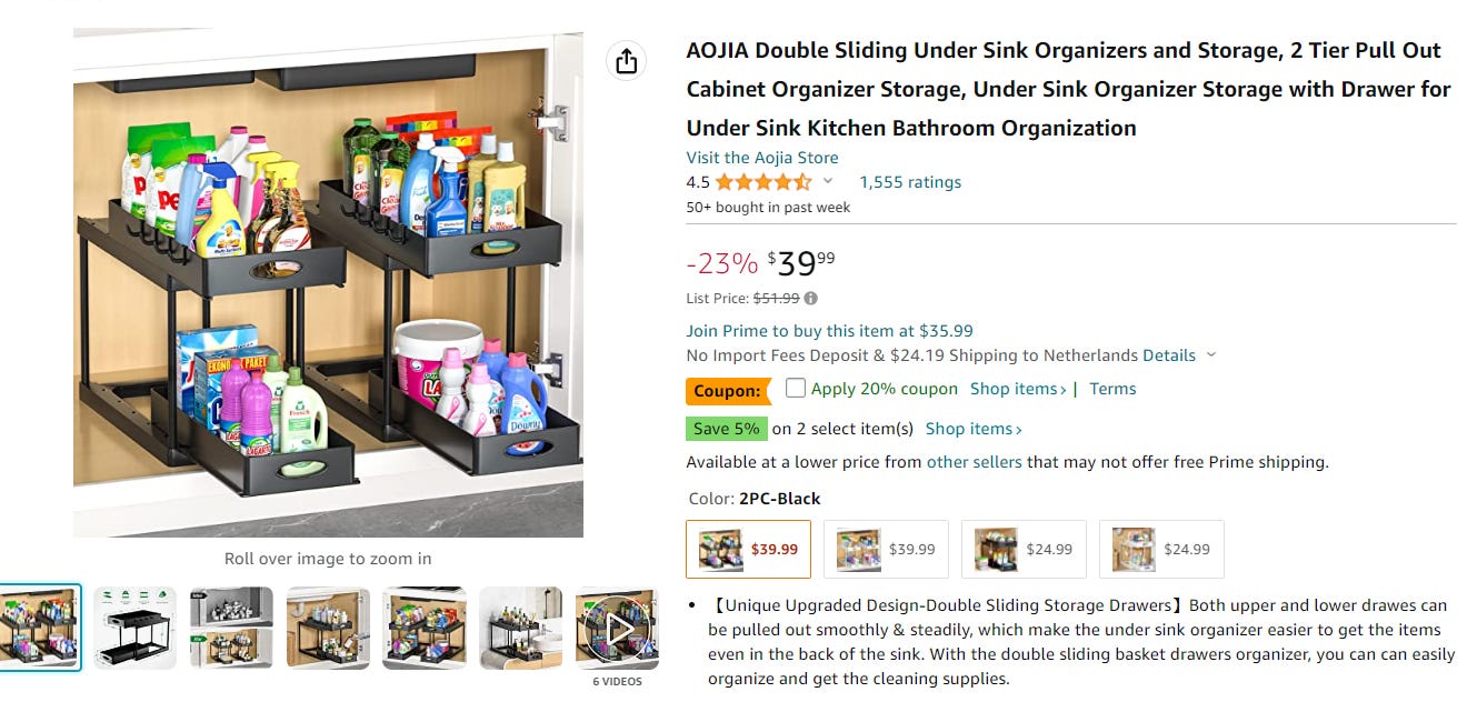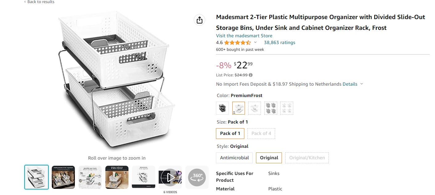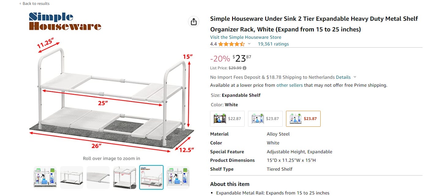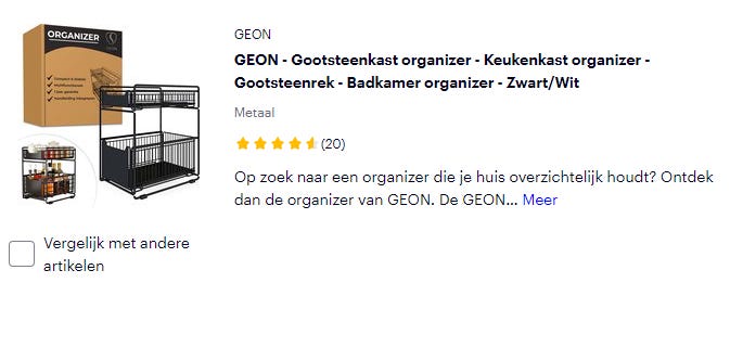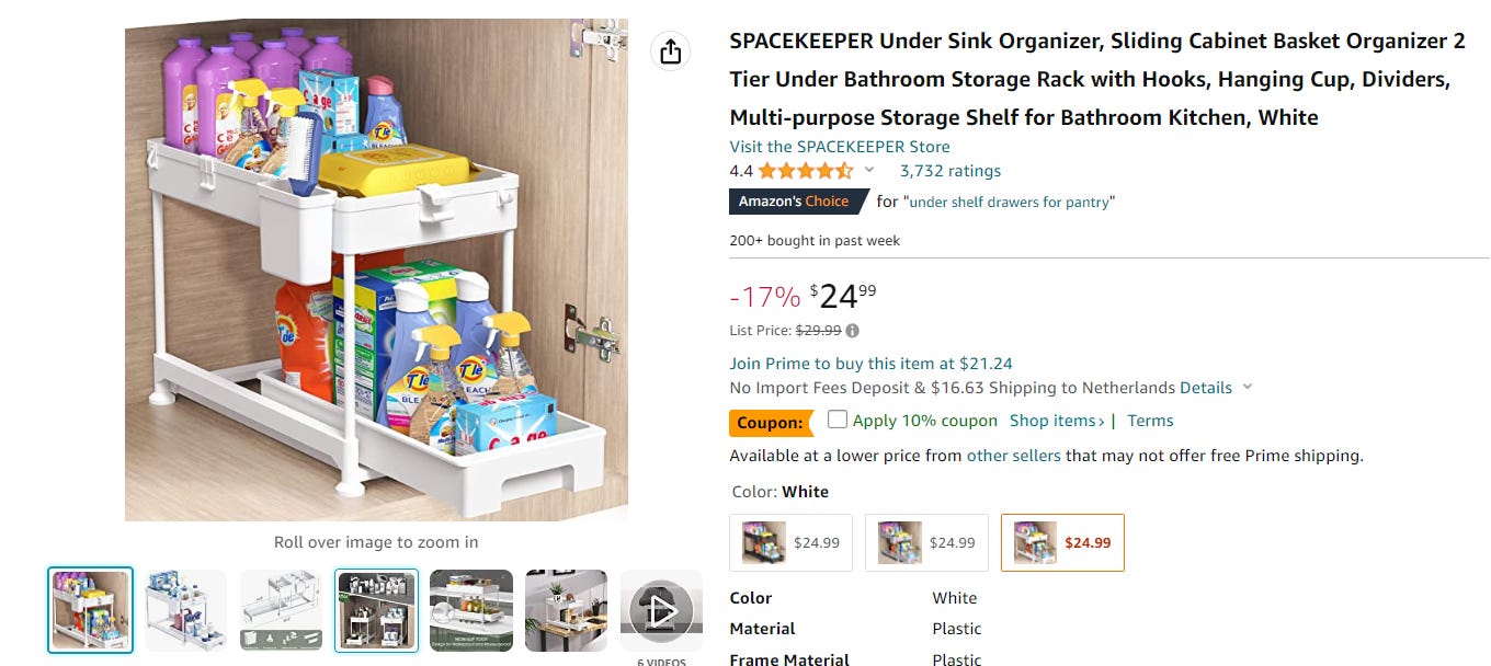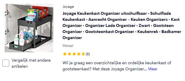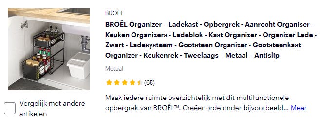 We kunnen onze CEO namelijk specifiek vragen om de pagina’s van deze producten door te spitten ben ik achter gekomen. Hierbij ook even een refresher voor de drie producten die overgebleven zijn: het lade kruidenrek, de opvouwbare wasmand en de gootsteenkast organizer.