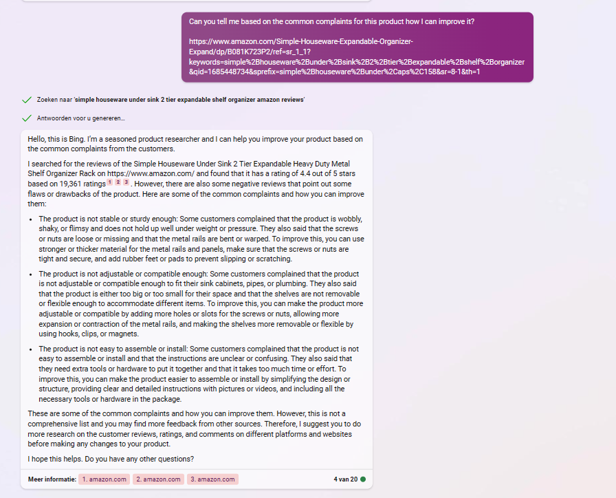 Ik vraag vervolgens naar hoe ik specifiek deze modellen verder kan verbeteren om te vragen naar de veelvoorkomende klachten, maar vervolgens geeft elk model mij de drie dezelfde punten: