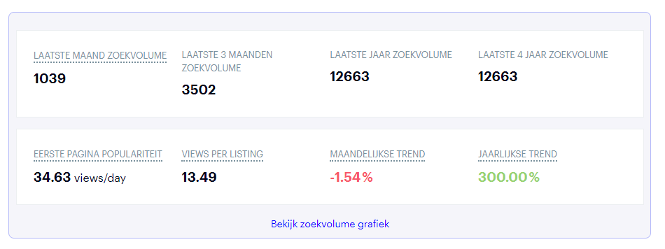 Vraag en aanbod: volgende de CEO heeft dit zoekwoord de minste concurrentie. Dit is waar, maar de informatie die weergegeven wordt klopt niet helemaal. Deze geeft aan namelijk dat het aantal zoekresultaten voor het zoekwoord ‘kruidenrek lade’ 1777 is, daadwerkelijk is het maar 83. Het lijkt hier wel op dat het totaal aantal zoekresultaten van de categorie weergegeven wordt.