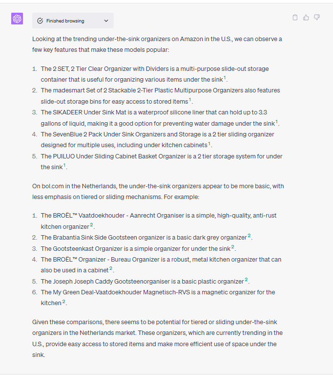 Wonderbaarlijk genoeg kan onze CEO ons ook helpen met het spotten van trends. In dit geval vroegen we om de Amerikaanse en Nederlandse markt te vergelijken en zo te identificeren of er potentiele kansen zijn op Bol.com.